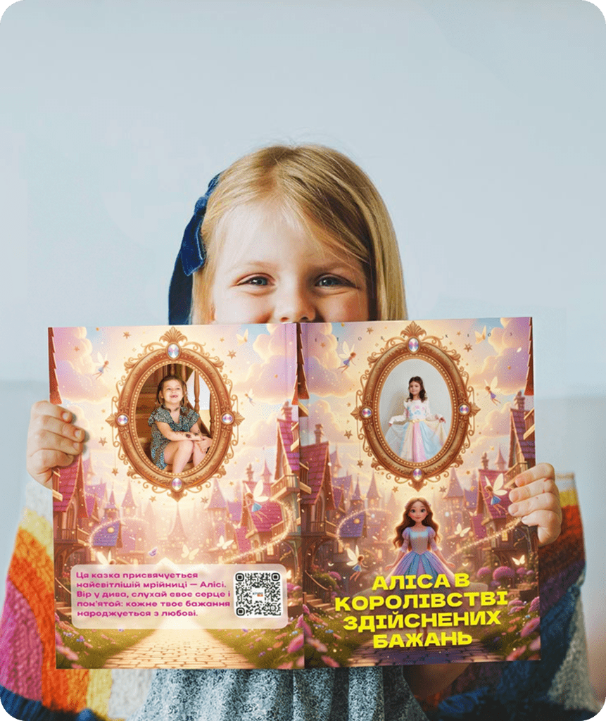 Одяг стає замалим, інтереси змінюються. Але казка, написана спеціально для вашої дитини, з її фотографіями та іменем — це пам’ять, яка залишиться в родині назавжди. Уявіть, з яким теплом ваш син чи донька гортатиме ці сторінки через 15-20 років, згадуючи той самий день, коли ви подарували їм цей магічний світ.